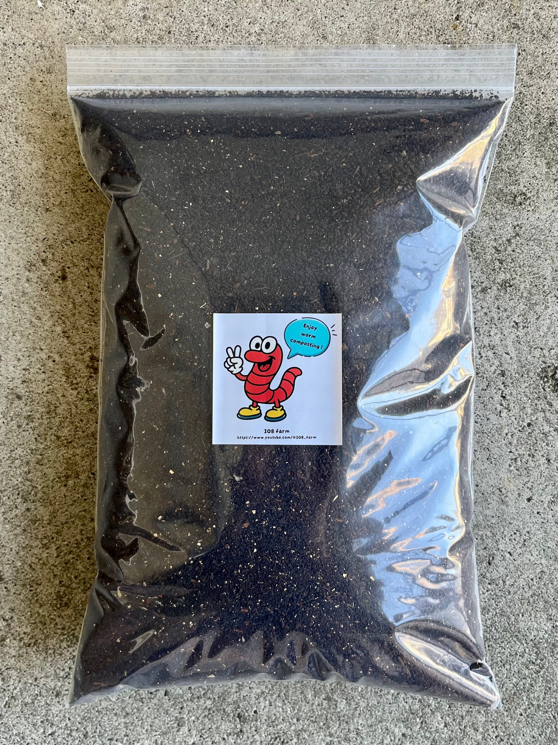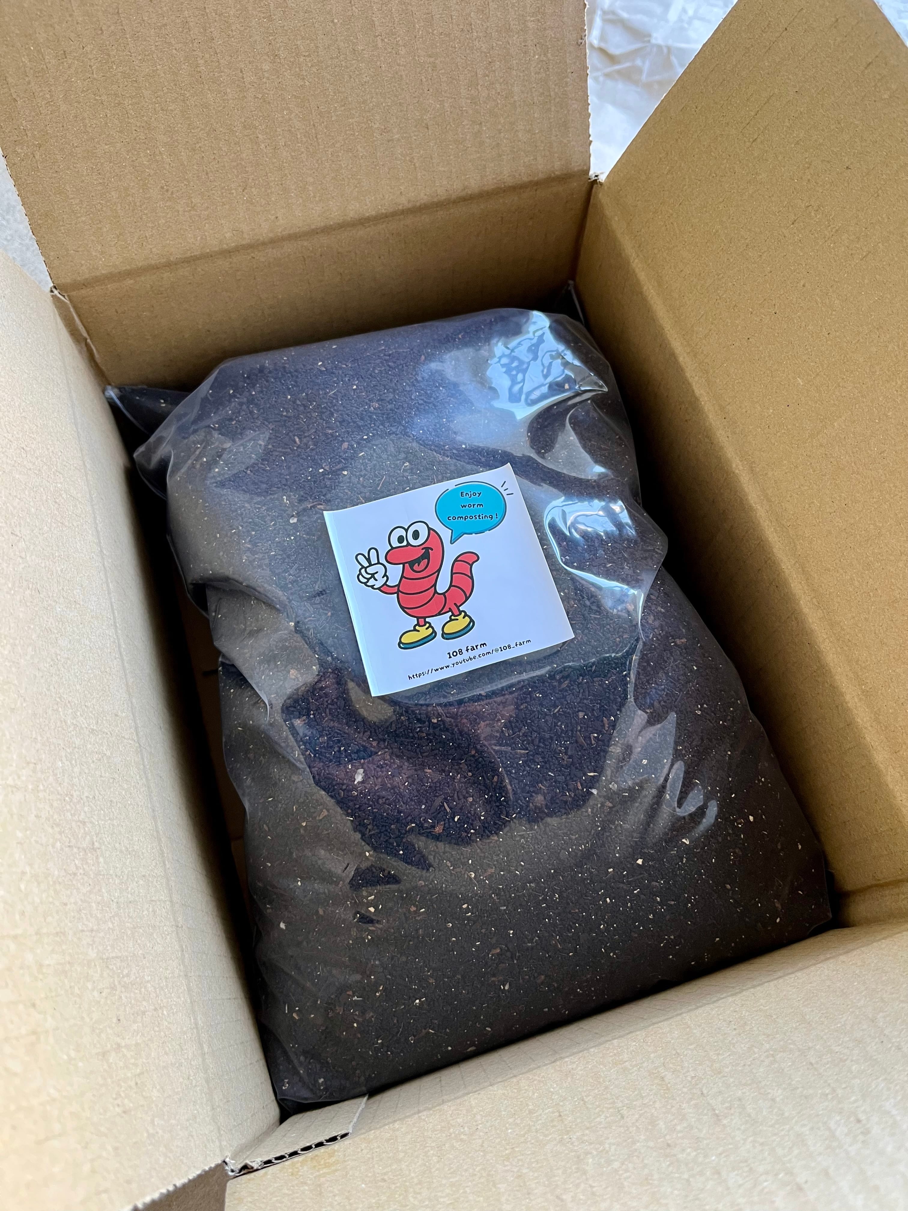 108farmオリジナルの「ミミズ SOIL」は、植物性の有機物をミミズがじっくり分解してつくった、栄養たっぷりのミミズ堆肥(ミミズの糞)です。